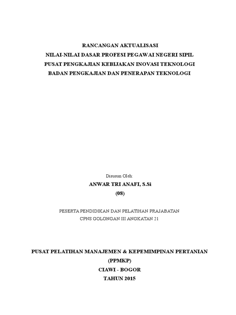 Contoh Format Rancangan Aktualisasi Prajabatan Cpns Di Bpsdm