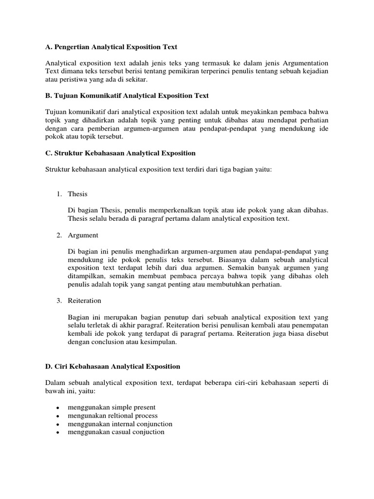 Tema utama sebuah teks analitis adalah dijelaskannya beberapa alasan terhadap gagasan yang telah disampaikan sebelumnya. Contoh text analytical exposition. Fungsi sosial dari teks analytical exposition adalah untuk meyakinkan pembaca bahwa topik yang dihadirkan adalah topik yang penting untuk dibahas atau. Contoh analytical exposition text bisa dibaca dalam blog ini karena telah dikumpulkan 7 contoh teks pendek berjenis argumentative ini. Sebagai teks yang mengusung asas pembuktian teks analytical exposition ini akan banyak bersifa subjektif. Analytical exposition text adalah salah satu jenis teks yang menjelaskan tentang pemikiran terperinci penulis tentang sebuah kejadian atau peristiwa yang ada di sekitar text ini termasuk ke dalam jenis argumentation text.