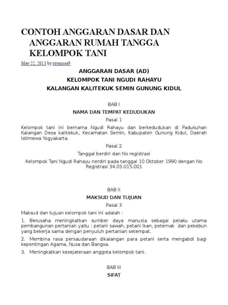 Aris ali s u r i a l a n team penyusun ketua sekretaris cl. Sukaresmi rt 05 rw 02 ds. Apabila hal hal yang diatur didalam anggaran rumah tangga ini ternyata bertentangan dengan anggaran dasar maka yang berlaku adalah anggaran dasar. Contoh anggaran dasar dan art organisasi. Anggaran dasar ini dibuat pada tanggal 19 februari oktober 2011 di sengkang kab. Jenis koperasi ini adalah koperasi serba usaha 2.