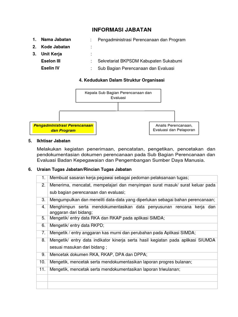 Ikhtisar jabatan ini adalah melakukan kegiatan penerimaan pencatatan dan pendokumentasian dokumen administrasi. Badan pengelolaan keuangan daerah kabupaten bekasi tahun 2017 uraian jabatan. Informasi jabatan petugas teknologi informasi komputer sistem informasi pengelolaan keuangan daerahsipkd dan sistem informasi manajemen anggaran dan akuntansi keuangan daerahsimakda. Sekretaris bpkd eselon iv. Kepala dinas 21301 dinas kepemudaan olahraga dan pariwisata 21301 dinas kepemudaan. Analisa jabatan analisa beban kerja evaluasi jabatan.
