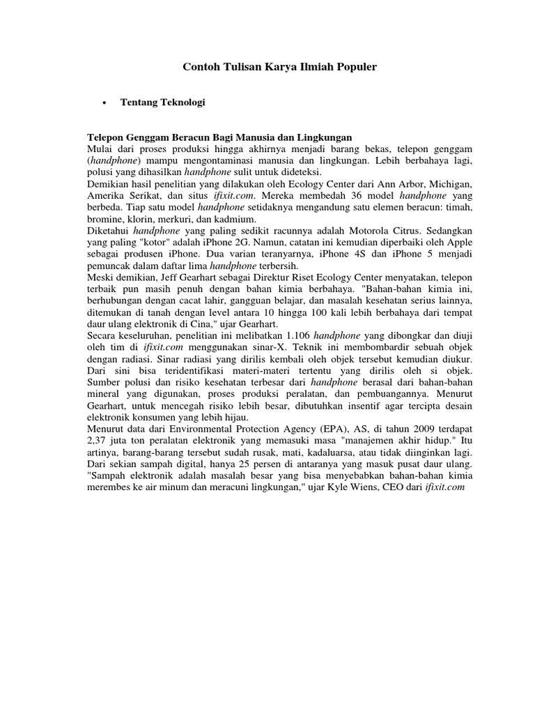 Contoh Artikel Ilmiah Bahasa Indonesia Kumpulan Soal