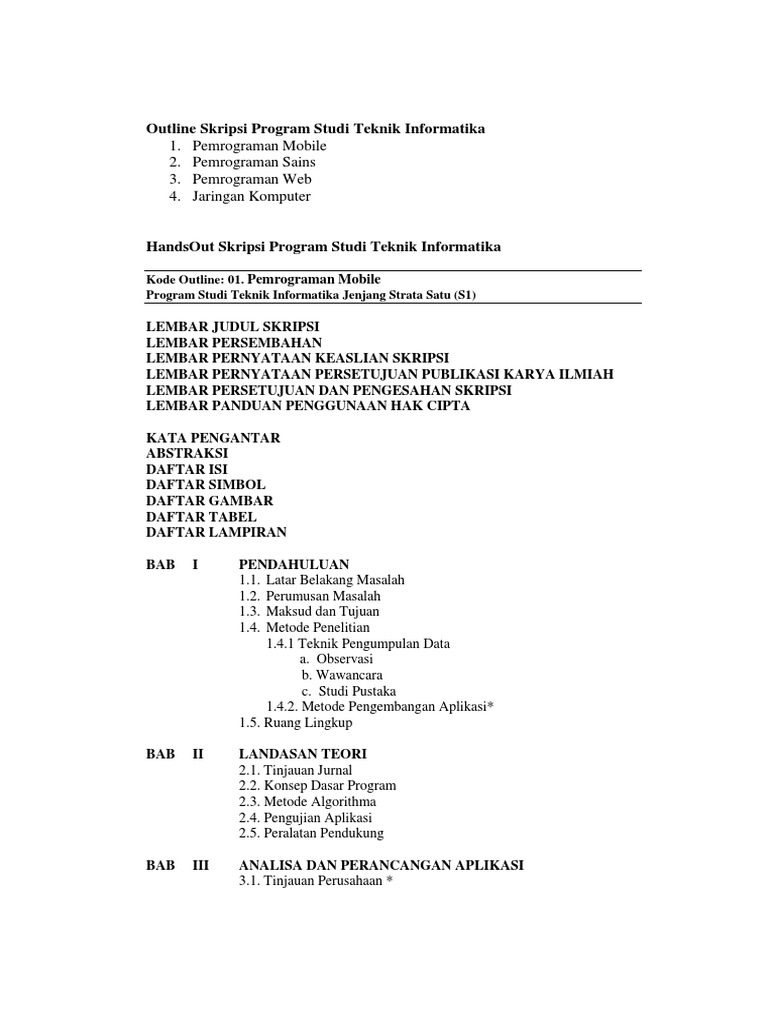 Contoh bab 1 skripsi teknik informatika. Bab i pendahuluan skripsi teknik informatika. Nantinya berbagai sumber yang anda peroleh sangat menunjang proses penyusunan pada bab 2 khususnya sumber yang berasal dari buku untuk mengisi berbagai pendapat ahli yang menguatkan tema skripsi yang anda ambil. Dengan perkembangan dan kemajuan teknologi yang semakin canggih membuat jaringan komunikasi dan informasi menjadi lebih mudah diakses dan didapatkan. Proses penyusunan bab dua pada skripsi teknik informatika melibutkan komponen bab satu yakni teknik pengumpulan data. Asal usul etimologi sesuatu perkataan dan juga contoh penggunaan bagi sesuatu perkataan. Kami menyediakan contoh laporan sebagai bahan referensi laporan contoh laporan disertai dengan jurnal dan program source code jika tersedia.