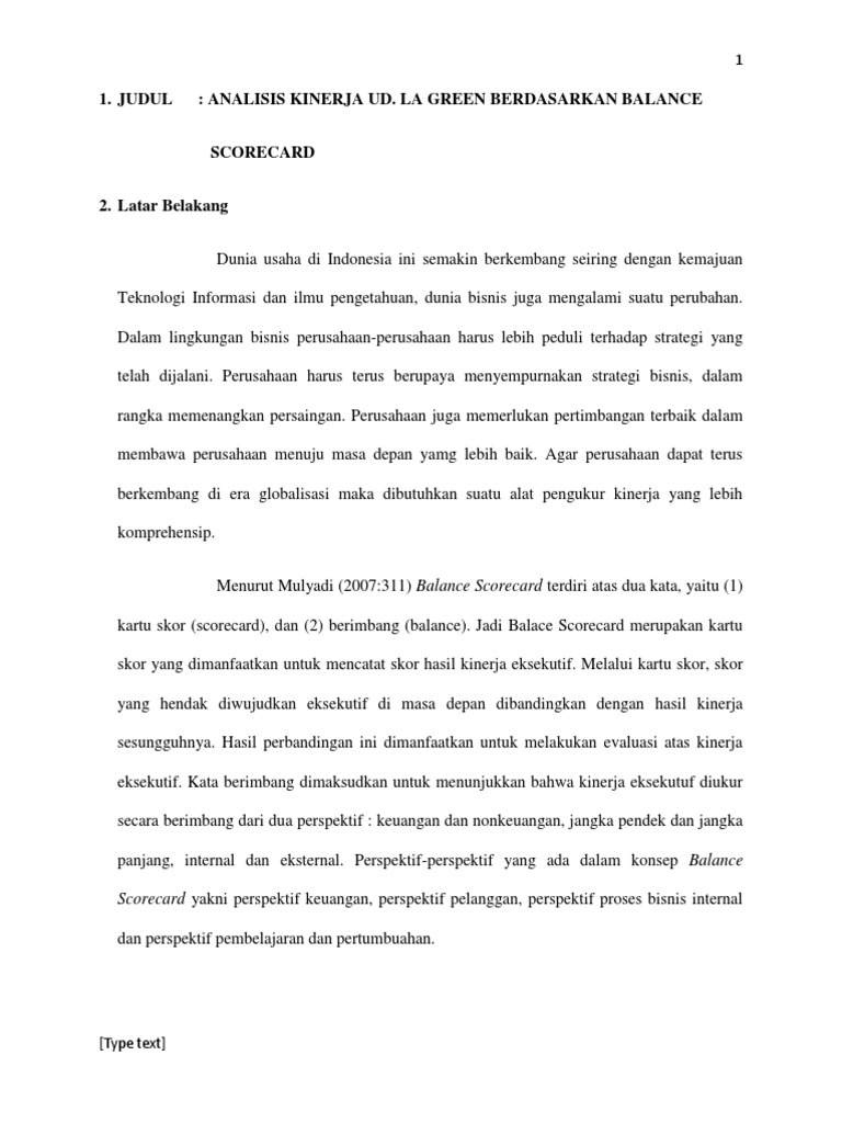 Perancangan metode balanced scorecard pada pt samchem prasandha tune kartika jimmy ardianto institut teknologi dan bisnis kalbe jakarta abstract. Perusahaan dagang yang berstatus sebagai penanaman modal asing pma. Contoh penerapan balanced scorecard pada pt kojo. Kojo menerapkan performance management system dengan pola 2 kaki yaitu management by objective dengan mengimplementasikan balanced scorecard dan management by values. Armada perusahaan terus berkembang hingga akhirnya pada tahun 1956 untuk pertama kalinya garuda indonesia membawa penumpang jamaah haji ke mekkah. Studi kasus pada pt.