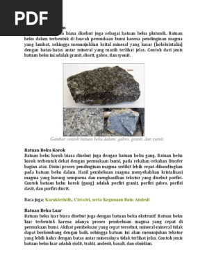 Batu porfir banyak digunakan untuk lantai taman outdoor sumber. Itu berarti letak pembekuan batuan beku korok ini lebih dekat dengan permukaan bumi. Adapun untuk contoh batuan beku luar berikut ini 7 batu yang bisa mewakili ciri dan karakteristiknya. Oleh karenanya posisi batuan beku korok biasanya dekat dengan permukaan bumi. Batuan beku korok biasanya terbentuk akibat adanyanya penyusupan magma yang terjadi pada celah celah litosfer bagian atas dan kemudian akhirnya membeku. Ciri batuan beku korok batuan beku merupakan jenis batuan yang terbentuk dari proses pendinginan magma dengan suhu antara 600 hingga 1300 derajat celcius.