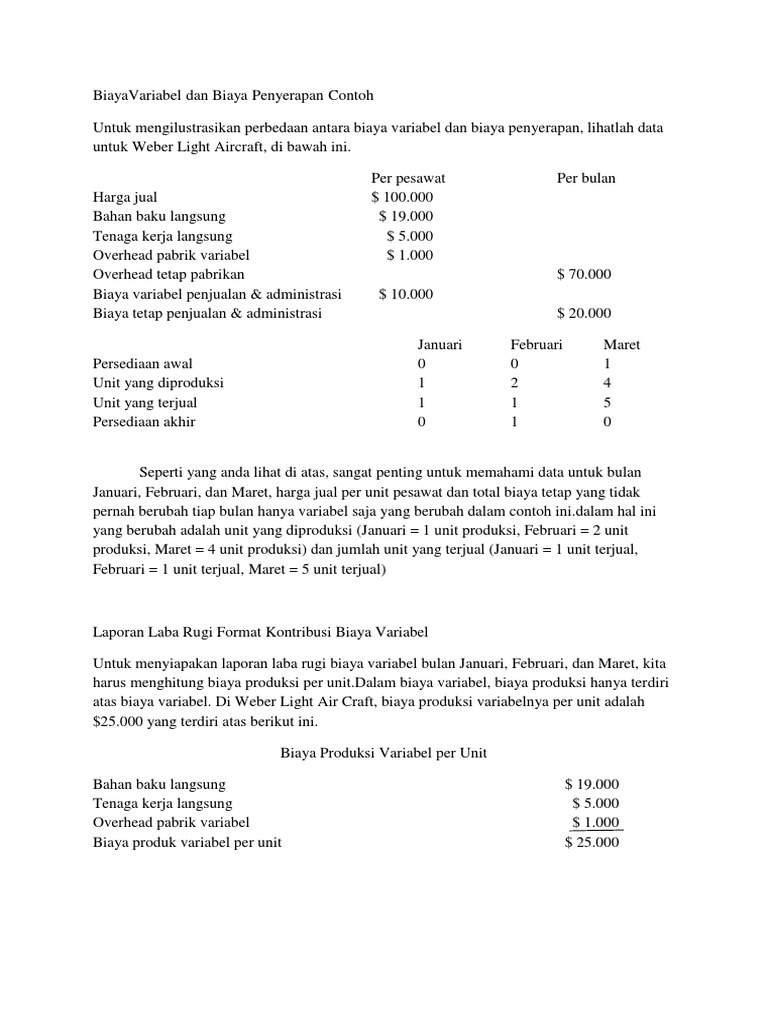 Di sisi lain biaya variabel tetap konstan dalam per unitnya. Anda bisa memahami ini dengan contoh yaitu jika biaya variabel adalah rp. Semoga penjelasan mengenai pengertian biaya tetap dan biaya variabel beserta contohnya yang singkat ini bisa bermanfaat bagi teman teman semuanya. Pengertian biaya variabel variable cost dan contohnya dalam setiap proses produksi produsen atau perusahaan penghasil suatu produkbarang pasti akan mengeluarkan berbagai biaya. Biaya tetap tidak dapat dipengaruhi oleh jumlah produk yang akan diproduksi. Semakin tinggi volume aktivitas maka total biaya variabel juga semakin naik dan sebaliknya.