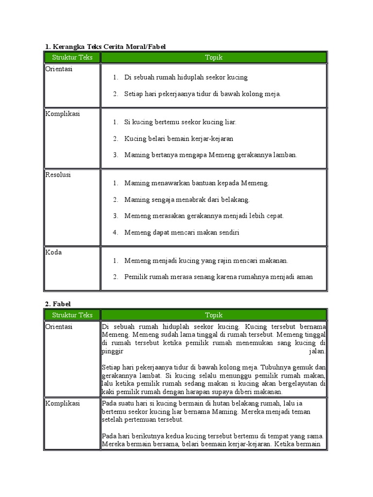 Contoh cerita fabel dan strukturnya. Diantaranya kancil mencuri mentimun semut dan belalang lebah dan semut buaya yang serakah ulat yang sombong dan masih banyak lainnya. Sebelum kita mengetahui contoh teks cerita fabel singkat tersebut ada baiknya kita mengulas kembali teks cerita fabel ini. Cerita fabel hewan pengertian fabel menurut kamus besar bahasa indonesia adalah cerita yang menggambarkan watak dan budi manusia yang pelakunya diperankan oleh binatang berisi pendidikan moral dan budi pekerti. Contoh teks fabel dan strukturnya ada banyak judul cerita fabel yang telah populer di masyarakat indonesia. 10 contoh cerita fabel singkat dan pendek beserta strukturnya terdapat berbagai jenis teks dalam bahasa indonesia salah satunya adalah teks cerita bergaya narasi karangan seperti cerita fabelcerita sendiri sangat digemari oleh banyak orang karena bersifat menghibur pembaca melalui alur dan berbagai unsur cerita tersebut. Apa saja contoh teks cerita fabel.