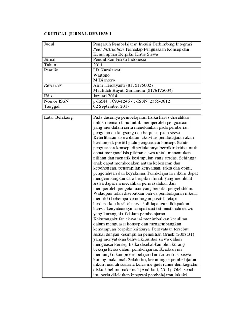 Contoh critical review jurnal pendidikan. Tujuan penelitian tujuan utama dari penelitian ini adalah untuk memperoleh pemahaman yang lebih baik bagaimana orientasi budaya tionghoa orang tua imigran dan anak anak mereka dapat berinteraksi untuk menghasilkan peningkatan gejala depresi di. Kata baku dan tidak baku mei 2. Mayoritas dari kedua ayah 631 dan ibu 684 melaporkan mencapai sekolah tinggi atau tingkat pendidikan yang lebih tinggi. Arti dan pentingnya pembukan uud 1945. Critical review jurnal dapat dilakukan setelah jurnal yang dipilih telah diringkas pada bagian di atas. Critikal review jurnal pendidikan indonesia implem.