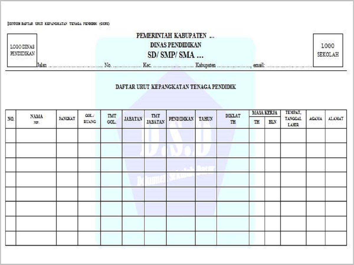 Daftar urut kepangkatan ini dibuat setiap tahun secara rutin. Format duk ini adalah contoh format duk terbaru 20172018 yang dapat anda jadikan referensi dalam membuat duk daftar urut kepangkatan disekolah anda.