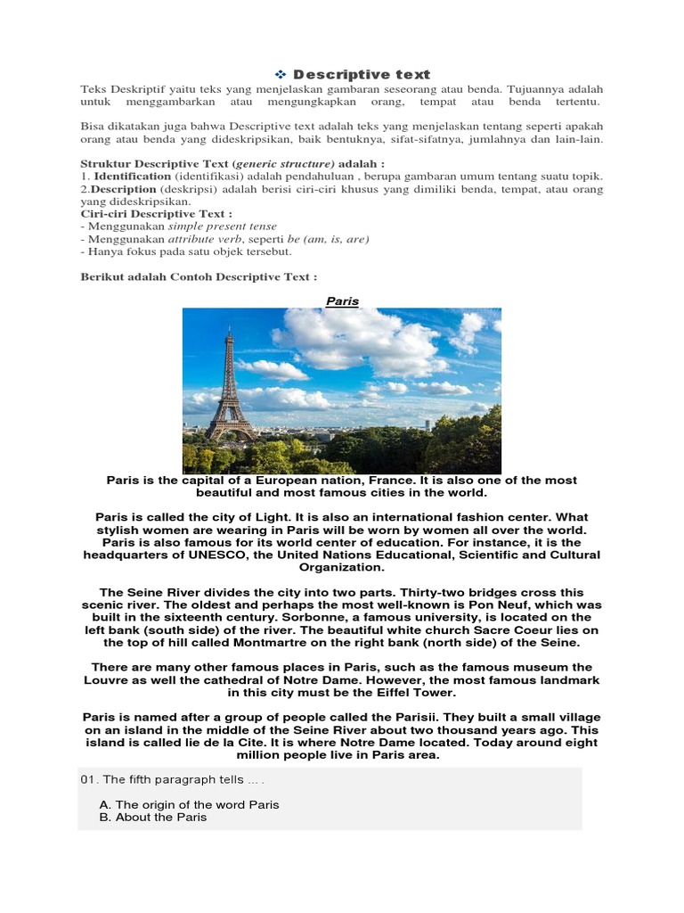 Bacaan ini berfungsi untuk mendeskripsikan maupu menjelaskan secara baik tentang suatu hal baik berupa seseorang hewan benda tempat dan lainnya. Descriptive text adalah salah satu genre tulisan. Yuk langsung saja kita simak contoh contoh dari descriptive text berikut ini. Contoh descriptive text tentang benda dan artinya contoh soal descriptive text tentang benda 04 01 2019 dear readers bacaan hari ini terinspirasi dari barang kesayangan pribadi pustakabahasainggris com akan mencoba memberikan informasi tentang materi descriptive text yang mungkin nantinya bisa kalian pergunakan untuk melengkapi tugas sekolah simak benda dan artinya alexandre christie 6344. Pada kesempatan ini kami akan membagikan contoh descriptive text tentang benda kesayangan yang ada di sekitar kita juga terjemahannya. Descriptive text penjelasan pengertian tujuan generic structure ciri contoh.