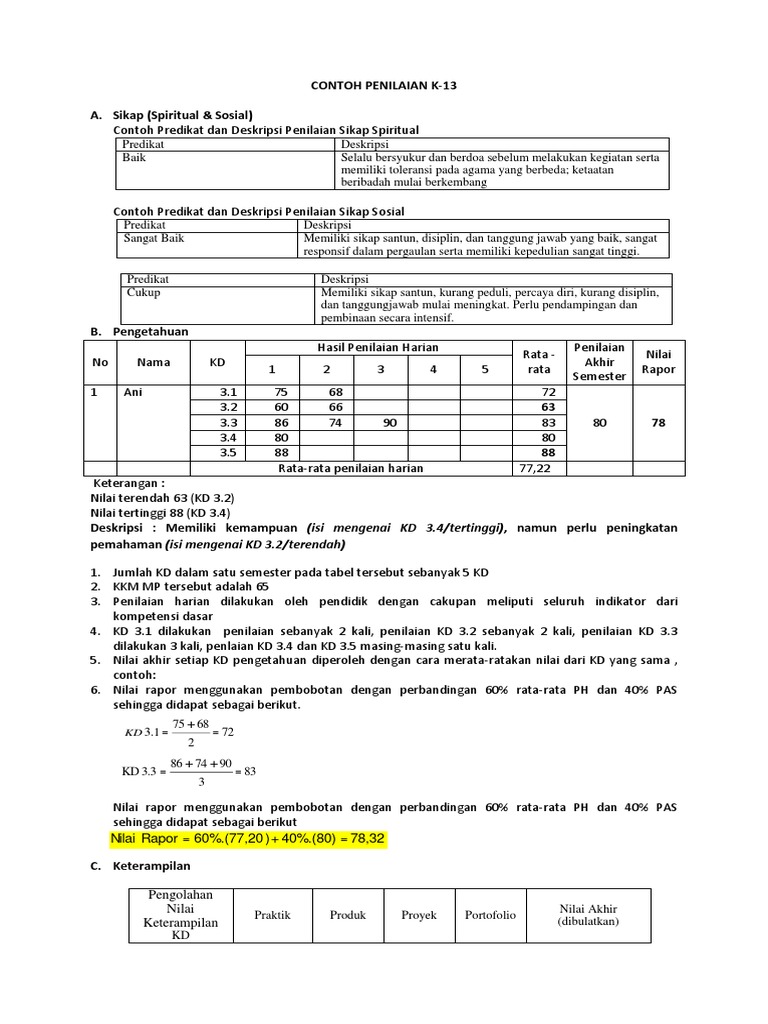 Contoh deskripsi penilaian sikap spiritual. Implementasi kurikulum 2013 berimplikasi terhadap penilaian sikap pengetahuandan keterampilan baik selama proses formatif maupun pada akhir periode pembelajaran sumatifproses penilaian dilakukan dengan cara menganalisis dan menafsirkan data hasil pengukuran capaian kompetensi siswa. Laporan penilaian sikap dalam bentuk nilai kualitatif dan deskripsi dari sikap peserta didik untuk mata pelajaran yang bersangkutan dan antarmata pelajaran. Pada akhir semester guru mata pelajaran dan wali kelas berkewajiban melaporkan hasil penilaian sikap baik sikap spiritual dan sikap sosial secara integratif. Deskripsi sikap menyebutkan perkembangan sikapperilaku peserta didik yang sangat baik danatau baik dan yang mulaisedang berkembang. Sangat baik 334 400 sudah konsisten selalu berperilaku sesuai yang diharapkan dari semua aspek sikap yaitu spiritual jujur tanggung jawab disiplin percaya diri gotong royong santun dan toleransi. Pada jenjang smpmts kompetensi sikap spiritual mengacu pada ki 1.