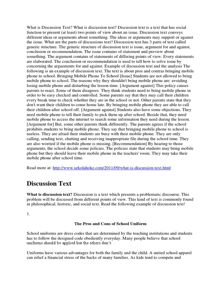 With internet we can do anything both the positive and negative things. Kali ini kita akan membahas mengenai sebuah materi pembelajaran bahasa inggris tentang discussion text adapun disini kita akan membahas 5 contoh atau examples of discussion text singkat about internet smoking social media televisi dan ujian nasional beserta arti terjehaman dan generic structurenya.