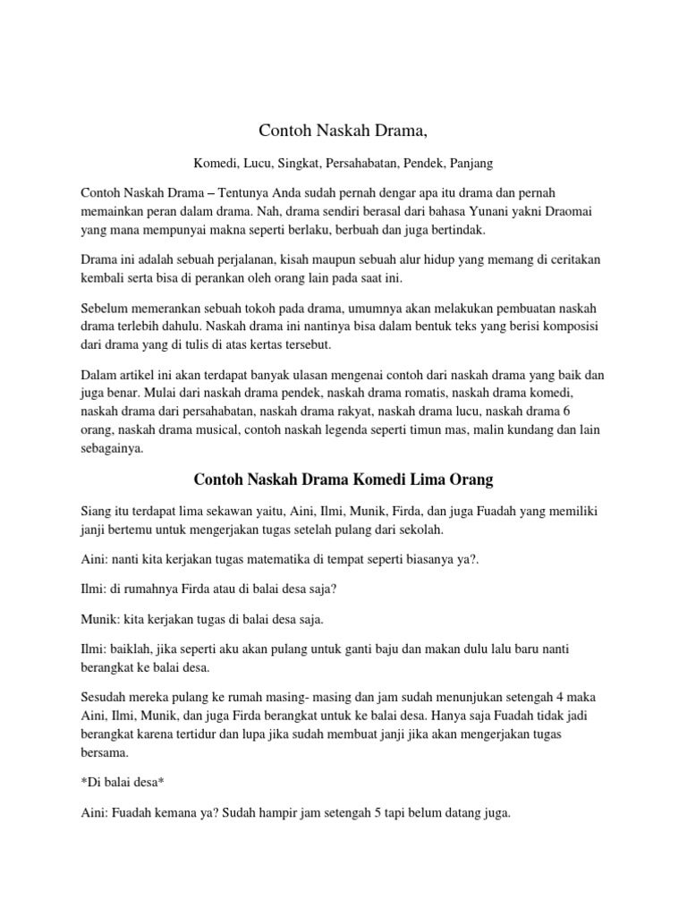 Contoh naskah drama 4 orang singkat tentang persahabatan di sekolah. 14 contoh naskah drama. Makasih sudah berkenan berbagi contoh naskah drama untuk 6 orang pemain sangat berguna. Thanks for your short drama. Naskah drama 4 orang tema. Contoh naskah drama pendek drama berasal dari bahasa yunani yaitu draomai yang memiliki arti berbuat berlaku dan bertindak.