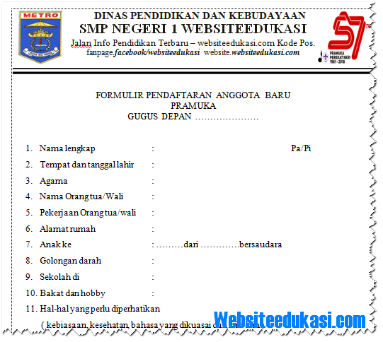 Contoh formulir pendaftaran organisasi pramuka materi pelajaran 7. Formulir pendaftaran anggota paskibra pasukan pengibar bendera paskibra sekolah. 81 pahoman bandar lampung telp. Contoh deskripsi ekstrakurikuler pramuka bro gol 111 via brogol111 contoh deskripsi ekstrakurikuler pramuka j k a t l v via jkatlv 14. Opramuka orohis okelompok ilmiah obadminton oband sekolah obasket. Jalan gatot subroto no.