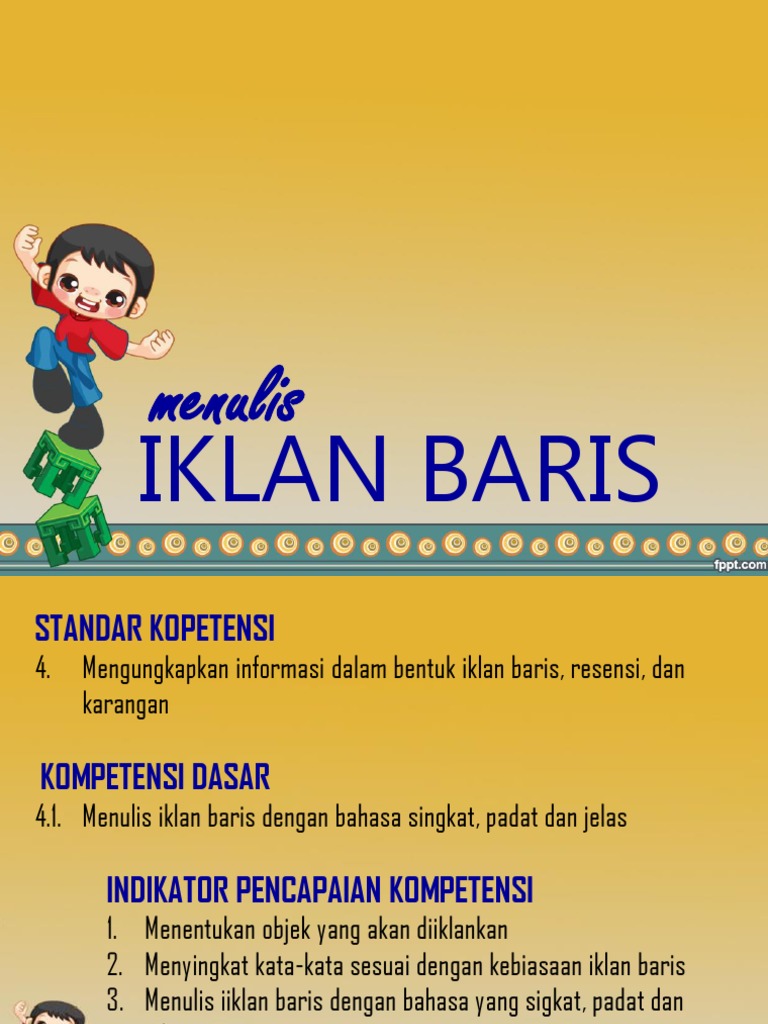 Iklan baris dan iklan kolom salah satu media cetak yang sangat populer saat ini adalah surat kabar atau bahkan boleh kita bilang bahwa surat kabar adalah media cetak yang tiada matinya sejak pertama kali ia dipublikasikan. Bahkan untuk menarik perhatian pembaca ada yang penuh satu halaman koran. Dijelaskan bahwa pengiklan menawarkan mobil new alvanza baru dengan berbagai promo menarik seperti free hadiah tanpa undian. Contoh iklan baris pengertian iklan baris adalah salah satu jenis promosi iklan barang atau jasa di koran dalam bentuk teks singkat terbatas. Iklan kolom iklan kolom adalah iklan yang pemuatannya memanfaatkan beberapa bagian kolom dari halaman surat kabar. Gambar diatas merupakan contoh iklan kolom berisi informasi penjualan mobil toyota murah.