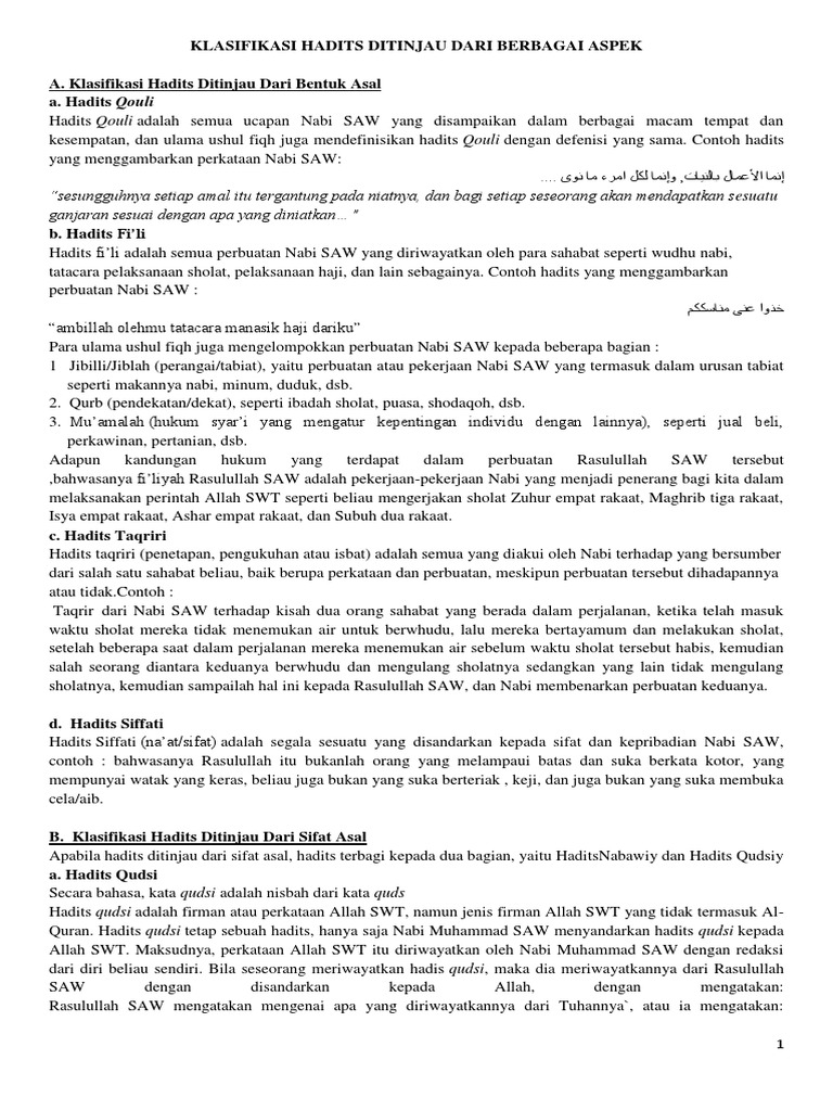Contoh hadits fi liyah. Dilihat dari tingkatannya sunnah qauliyah menempati urutan pertama yang berarti kualitasnya lebih tinggi dari kualitas sunnah filiyah maupun taqririyah. Contoh lainnya dapat pula dilihat. Pemaparan ketiga macam bentuk sunnah berikut ini selain mendudukkan pengertian masing masing juga dengan manyajikan contoh contohnya. Hadits tentang tata cara shalat di atas. Yang berupa perbuatan nabi yang diberitakan oleh para sahabat mengenai soal soal ibadah dan lain lain seperti melaksanakan shalat manasik haji dan lain lain. Yang dimaksud dengan hadist filiyah yaitu segala yang disandarkan kepada nabi saw berupa perbuatannya yang sampai kepada kita.