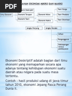 Industri katun di india sistem pertanian di bali dan seperti keadaan petani di jawa tengah. Memusatkan perhatian dalam permasalahan yang terjadi dan bersifat aktual pada saat penelitian akan dilakukan. Ilmu ekonomi menyangkut ekonomi mikro dan ekonomi makro. Ekonomi deskriptif merupakan cabang ilmu ekonomi yang memaparkan secara apa adanya tentang kehidupan ekonomi pada suatu daerah atau negara pada suatu masa tertentu berdasarkan data yang ada. Ilmu ekonomi deskriptif adalah kajian yang memaparkan secara apa adanya tentang kehidupan ekonomi suatu daerah atau negara pada suatu masa tertentu. Alasan penting dalam mempelajari ilmu ekonomi deskriptif ialah semakin pentingnya peranan ekonomi dalam kehidupan mulailah banyak ahli yang terkait untuk memecahkan persoalan ekonomi karena filsafat tidak lagi sanggup memcehkan seluruh masalah yang berkembang di masyarakt dan perbuatn manusia sebagai besar ditujukan untuk memenuhi kebutuhan hidup.