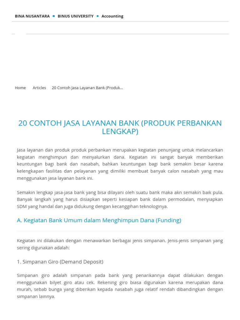 Saat ini layanan jasa tidak hanya dapat dilakukan di bank ataupun mesin atm namun dapat menggunakan smartphone melalui aplikasi e banking yang ditawarkan oleh masing masing bank. Layanan internet banking e banking electronic banking layanan terpopuler di era sekarang adalah internet banking atau e banking. Jasa transportasi seperti pelayanan jasa angkutan barang penumpang atau penyewaan. Semakin banyak jasa layanan bank yang ditawarkan maka semakin baik pula bank tersebut di mata para nasabah. 20 contoh jasa layanan bank produk perbankan lengkap jasa layanan dan produk produk perbankan merupakan kegiatan penunjang untuk melancarkan kegiatan menghimpun dan menyalurkan dana. Kegiatan ini sangat banyak memberikan keuntungan bagi bank dan nasabah bahkan keuntungan bagi bank semakin besar karena kelengkapan fasilitas dan pelayanan yang dimiliki membuat banyak calon nasabah yang.