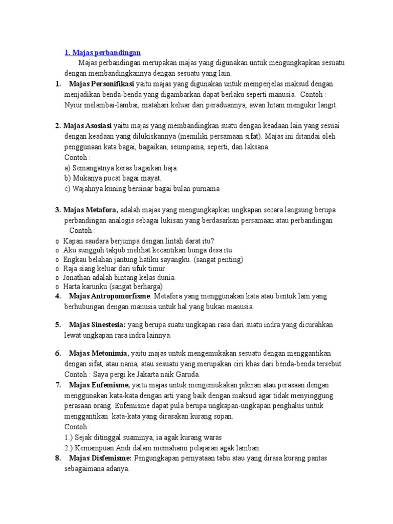 Majas ini hampir mirip dengan majas simile. Berikut contoh kalimat majas perumpamaan asosiasi. Majas pada umumnya digunakan dalam bahasa indonesia sehari hari dan juga masuk dalam kurikulum pelajaran bahasa indonesia sebagai salah satu seni sastra yang wajib dipelajari.