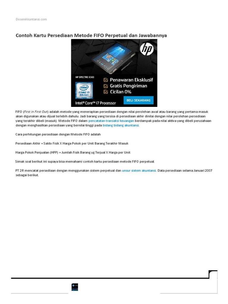 Contoh kartu persediaan metode fifo perpetual. Setiap jenis barang dibuatkan kartu persediaan dan di dalam pembukuan dibuatkan rekening pembantu persediaan. Umumnya pencatatan barang dagang dalam perusahaan dagang digunakan dengan menggunakan metode pencatatan yang sering kita kenal dengan sebutan sistem periodik dan sistem perpetual. Cara perhitungan persediaan dengan metode fifo adalah. Kemudian ada dua sistem pencatatan persediaan yang digunakan yaitu sistem perpetual dan periodik. Pada umumnya perusahaan menggunakan metode ini sebab metode ini perhitungannya sangat sederhana baik sistem fisik maupun sistem perpetual akan menghasilkan penilaian persediaan yang sama. Harga pokok penjualan hpp jumlah fisik barang yg terjual x harga per unit.