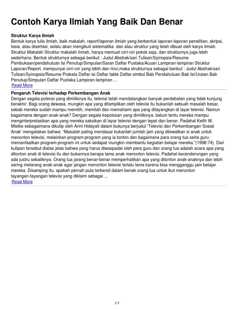 Biasanya karya ilmiah berisikan data fakta dan solusi mengenai suatu masalah yang diangkat. Karya tulis ilmiah adalah suatu karya yang dihasilkan dari penelitian yang telah dilakukan. Abstrak sendiri merupakan salah satu unsur penting dalam dalam struktur penulisan karya tulis ilmiah. Pas banget buat kamu yang butuh referensi. Penulisan karya ilmiah dilakukan secara runtut dan sistematis. Berikut ini adalah contoh karya tulis ilmiah yang baik dan juga benar.