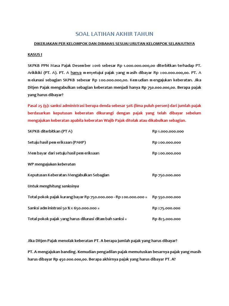 Contoh kasus pajak dan penyelesaiannya. Pajak bumi dan bangunan pbb adalah jenis pajak yang paling dikenal oleh setiap lapisan masyarakat dari pelosok desa sampai ke kota besar hampir semua orang tahu apa itu pbb dan sebagaimana halnya pajak penghasilan pph dan pajak pertambahan nilai ppn dalam pbb terdapat pula ketentuan yang mengatur perihal pengajuan keberatan pbb pengurangan pbb dan pengurangan sanksi pbb dan bphtb. Pastikan lagi syarat lain terpenuhi atau tidak di pmk 9pmk032013.