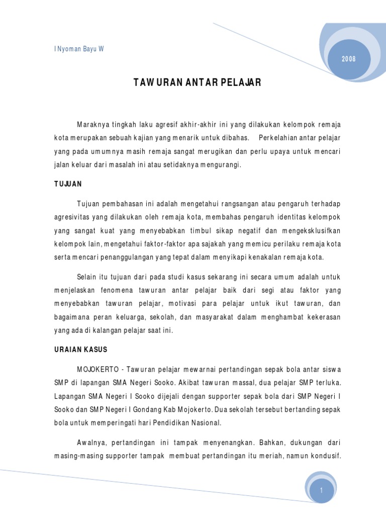 Kepala kepolisian sektor kemang kompol pramono da mengatakan peristiwa tawuran pelajar terjadi sekitar pukul 1430 wib di jalan raya kemang rabu. Artikel studi kasus tawuran antar pelajar di smk pgri 4 kediri tahun pelajaran 20182019 oleh.