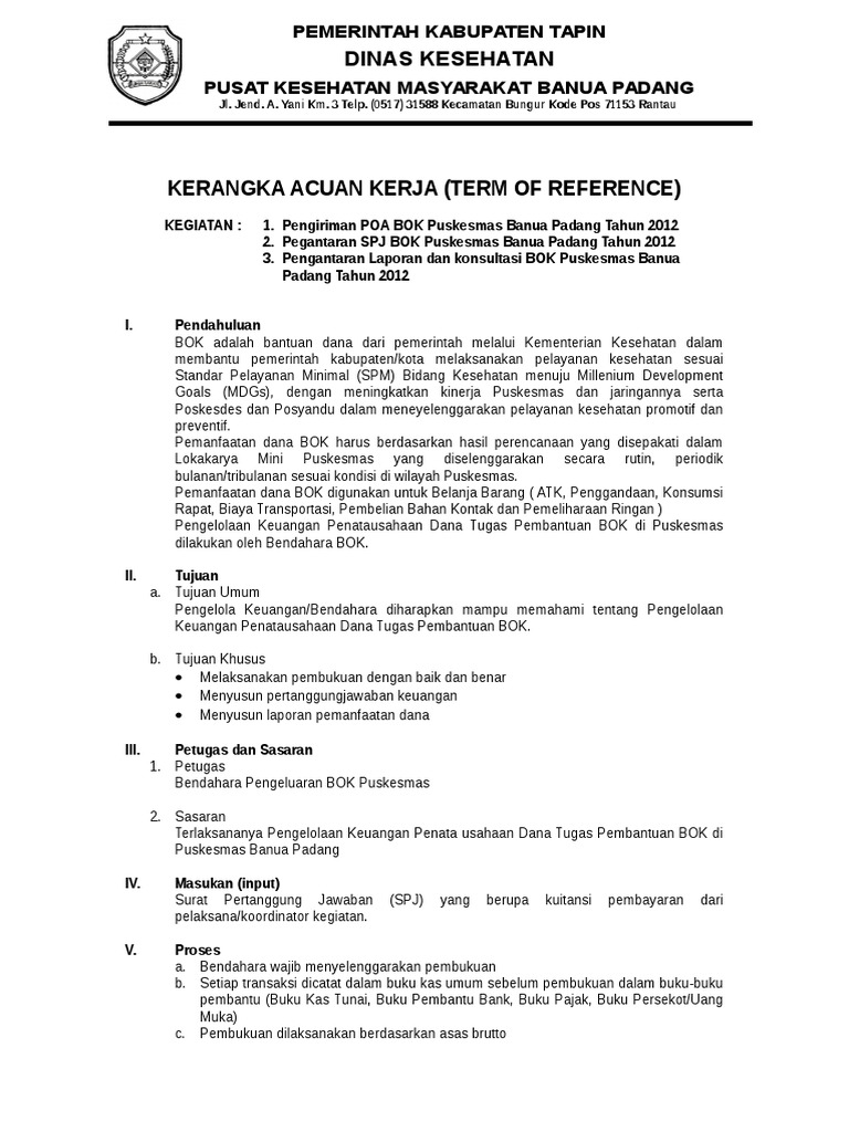 Contoh kerangka acuan kerja kegiatan skpd. Term of reference atau disingkat tor dalam pengertian bahasa indonesia disebut dengan kerangka acuan kerja atau disingkat kak. Maksud dan tujuan disusunnya kerangka acuan kerja ini adalah sebagai acuan dalam pelaksanaan perencanaan dan pengganggaran program dan kegiatan lingkup dinas ketahanan pangan. Penyusunan kerangka acuan kerja kak. Keberhasilan pelaksanaan suatu kegiatan tentunya diperlukan suatu acuan atau pedoman dalam pelaksanaannya pekerjaan disamping peraturan dan perundang undangan yang ada. Torkak adalah dokumen yang berisi tentang gambaran umum suatu kegiatan. Kerangka acuan kerja atau juga disebut term of reference tor pengadaan barang adalah suatu dokumen yang menginformasikan gambaran latar belakang tujuan ruang lingkup dan struktur sebuah proyek pengadaan barang yang telah disusun oleh skpddinas terkait.