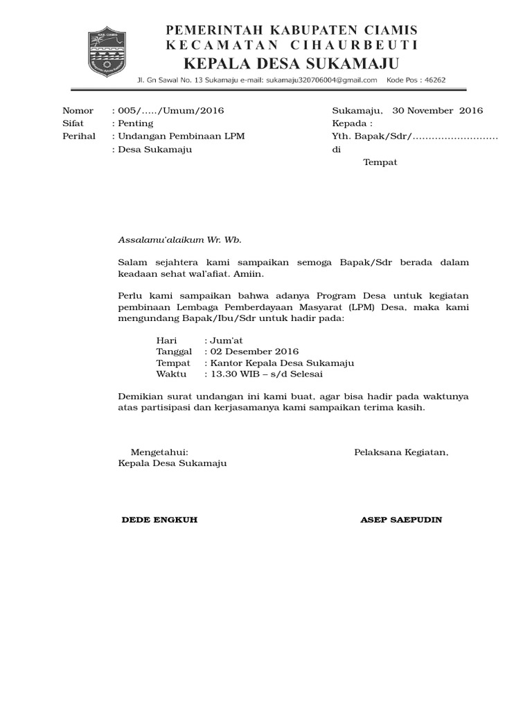 Contoh kop surat undangan karang taruna. Contoh surat undangan rapat karang taruna doc file oleh ri van diposting pada 24 november 2018 perlu di sadari bahwa membentuk suatu persatuan desa maupun kelurahan tentunya terbilang cukup penting hal ini karena kemajuan dari desa itu di tentukan oleh masyarakatnya sendiri terutama gerakan bagi para pemuda yang ada pada suatu desa tersebut untuk membentuk suatu komunitas dalam hal. Rapat sendiri memiliki arti suatu kegiatan yang berisi diskusi guna membahas hal hal seperti merencanakan dan mengevaluasi sebuah kegiatan pada suatu tempat. Dalam pelaksanaan suatu kegiatan rapat kita tidak bisa begitu saja mengadakannya tanpa suatu pemberitahuan terlebih dahulu. Contoh surat undangan rapat anda tentu pernah menghadiri sebuah acara rapat entah rapat rt rapat karang taruna rapat acara kepanitiaan rapat dengan klien di perusahaan rapat direksi dan lain lain. Contoh surat udangan rapat karang taruna kalau anda saat ini ada niat untuk memberikan kepada teman teman anda untuk menghadiri rapat karang taruna untuk bisa memelihara kampung anda dan memberikan kegiaatan bagi para pemudah kartar maka kami sampaikan disini untuk undangan rapat karang taruna tersebut untuk bisa anda hadirkan kepada teman teman untuk menghadiri karang taruna tersebut untuk. Admin blog bagikan contoh 2019 juga mengumpulkan gambar gambar lainnya terkait contoh kop surat karang taruna kelurahan dibawah ini.