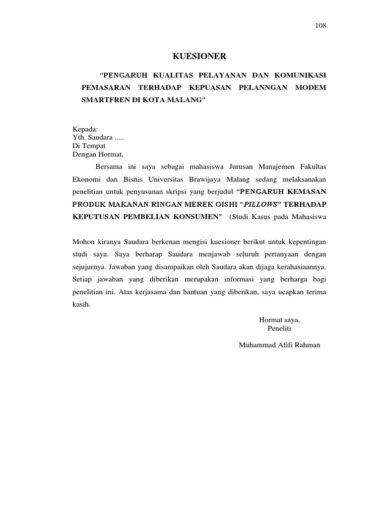 Contoh kuesioner kepuasan konsumen terhadap produk makanan. Pengertian kuesioner angket kuesioner adalah suatu daftar pertanyaan yang harus di isi oleh responden sebagai sarana untuk mengumpulkan informasi tentang perilaku karakteristik keyakinan dan sikap sekelompok orang atau organisasi. Survei kepuasan konsumen. Selanjutnya berikut ini saya sajikan contoh kuesioner kepuasan pelanggan yang juga bisa kamu download untuk keperluan survey usahamu. Contoh kuesioner kepuasan pelanggan doc. Contoh kuesioner kuesioner merupakan sebuah cara bagi seseorang yang ingin mengumpulkan informasi tentang suatu hal yang bersumber dari banyak orang. Contoh kuesioner di google form cara membuat tahukah kamu bahwa saat ini teknologi semakin maju.