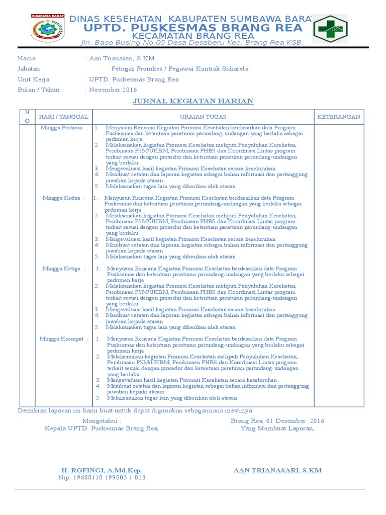 Contoh laporan kerja bulanan karyawan. Berikut ini adalah contoh format laporan kerja harian saya. Pada dasarnya daily activity adalah rangkaian aktivitas dari bangun tidur di pagi hari sampai tidur lagi pada malam hari dalam bahasa inggris. Anda bisa membuat daftar kegiatan apa saja yang perlu dikerjakan oleh siapa pelatihan itu dilakukan status aktivitas dan rincian lainnya dengan template ini. Laporan kegiatan harian dan mingguan. Jika kalian kerja menjadi pegawai atau karyawan pns maupun proyek kontraktor.