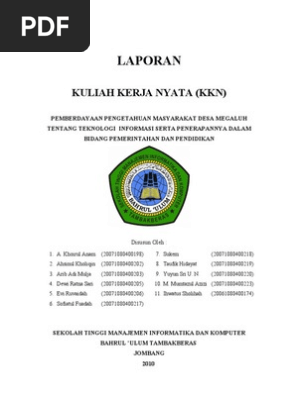 Kuliah kerja nyata kkn program pengabdian masyarakat ppm semester khusus tahun 20092010. Laporan individu kuliah kerja nyata kkn diposting oleh bersamamu selamanya di 0621. Puji syukur kepada allah swt pencipta alam semesta pemberi kekuatan serta kenikmatan bagi kita semua. Laporan individu kuliah kerja nyata kkn pembelajaran dan pemberdayaan masyarakat ppm. Waktu pelaksanaan kuliah kerja nyata kkn mahasiswa sekolah tinggi agama islam stai pati tahun 2016 dilakukan selama kegiatan program itu berjalan yaitu selama sebulan mulai dari tanggal 22 oktober 2016 sampai dengan tanggal 27. Kuliah kerja nyata kkn program pengabdian masyarakat ppm semester khusus tahun 200 9 20 10.