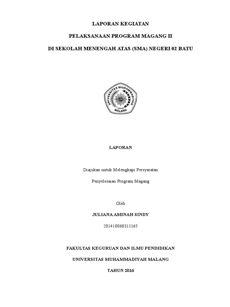 Contoh laporan magang 2. Syukur kami ucapkan kepada tuhan yang maha esa karena kami telah menyelesaikan laporan magang 2 dengan sebaik baiknya meski jauh dari kata sempurna. Contoh laporan magang 2 di tk yang bisa bapakibu gunakan dan diunduh secara gratis dengan menekan tombol download biru dibawah ini. Inilah contoh laporan magang 2 pgsd k13. Kritik dan saran sangat kami harapkan untuk menyempurnakan laporan ini. Download rpp silabus prota prosem kkm skkd ktsp 2006 sd kelas 5. Kepada teman teman program magang ii sma negeri 1 mamuju yang telah membantu saya dalam penyelesaian laporan.