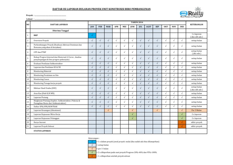Laporan harian mingguan dan bulanan proyek menjadi salah satu syarat administrasi teknis yang harus dibuat oleh kontraktor pelaksana pekerjaan proyek. Kumpulah contoh laporan lengkap laporan adalah suatu bentuk penyampaian berita keterangan pemberitahuan ataupun pertanggungjawaban baik secara lisan maupun secara tertulis dari bawahan kepada atasan sesuai dengan hubungan wewenang authority dan tanggung jawab responsibility yang ada antara mereka. Untuk file excel laporan saya sediakan secara berbayar cukup dengan rp. Laporan ini di buat oleh konsultan untuk memantau perkembangan progress kegiatan lapangan kegiatan proyek agar selesai tepat waktu. Excell xls merupakan laporan progres kemajuan pekerjaan setiap minggunya yang dihitung berdasarkan bobot pekerjaan. 50000 saja teman teman bisa mendapatkan file laporan lengkap dari kurva s laporan harian mingguan bulanan beserta.