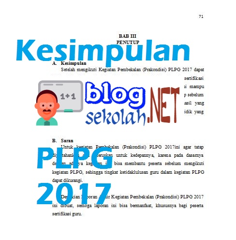 Sistematika laporan akhir pembekalan plpg tahun 2017 1. Pembuatan laporan ini sangat penting sehingga diharapkan kepada calon peserta plpg untuk dapat membuat laporan tersebut sebaik baiknya. Demikian artikel mengenai contoh kesimpulan dalam laporan akhir plpg 2017. Hasil penempatan peserta plpg 2017 ke lptk download contoh isi laporan plpg 2017 informasi ini adalah download contoh isi laporan plpg 2017 yang bisa anda download secara gratis di website kami. Proses pelaksanan plpg 2017 sudah berjalan sampai tahap prakondisi beberapa kelas plpg 2017 sudah mulai bisa mengupload tugas mempuat laporan hasil belajar tahap satu dua tiga dan empat. Ringkasan anda berupa potongan demi potongan paragraf belum sebagai penuangan dalam bahasa sendiri.