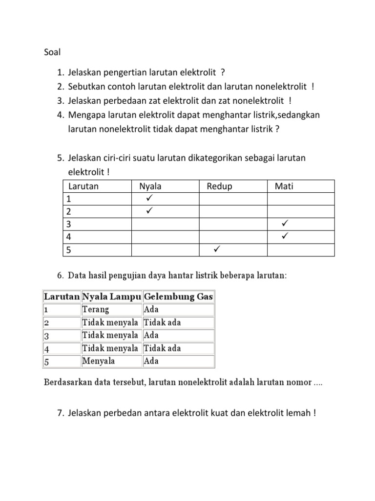 Contoh larutan non elektrolit. Pada konsentrasi sifat koligatif larutan elektrolit yang sama memliki sebuah nilai yang lebih besar dibandingkan dengan sifat koligatif larutan non elektrolit. Contoh larutan elektrolit dalam kehidupan sehari hari yaitu terdapat pada buah jeruk lemon tomat nanas larutan garam larutan oralit air aki air laut larutan asam sulfat larutan amonia larutan asam cuka asam klorida dan larutan natrium hidroksida. Larutan non elektrolit larutan non elektrolit merupakan larutan yang tidak bisa menghantarkan arus listrik. Semoga bermanfaat artikel lainnya. Jika suatu larutan memiliki data antara lain lampu tidak menyala dan pada elektrode timbul gelembung gas berdasarkan data tersebut dapat disimpulkan bahwa. Adapun larutan yang tidak menghantarkan arus listrik yaitu larutan urea larutan alkohol dan larutan glukosa.