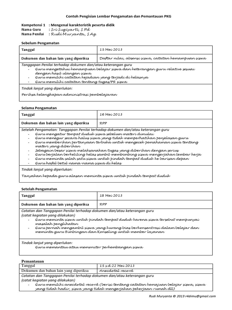 Lembar catatan fakta manual 1 lembar catatan fakta hasil pengamatan dan pemantauan proses pembelajaran mohon diisi dengan tulisan tangan dengan jelas lembar ke 1 nama guru yang dinilai. Pengamatan adalah kegiatan untuk menilai kinerja guru melalui diskusi sebelum pengamatan pengamatan selama pelaksanaan proses pembelajaran dan diskusi setelah pengamatan. Use the download button below or simple online reader. Itulah yang dapat kami bagikan terkait contoh lembar catatan fakta hasil pengamatan dan pemantauan proses pembelajaran. Sebelum pengamatan tanggal 15 mei 2013 dokumen dan bahan lain yang diperiksa daftar nilai absensi siswa catatan kemampuan siswa. Lembar catatan fakta pkg merupakan lembar yang dibuat atau diisi oleh penilai pada saat melakukan pengamatan.