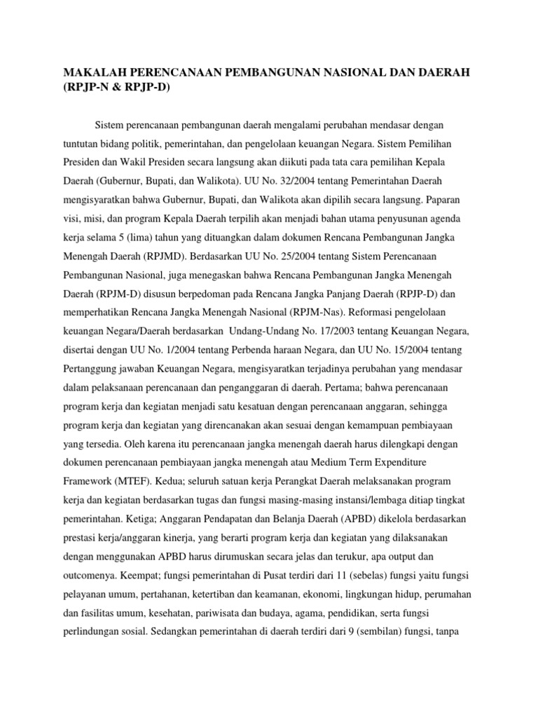 Contoh makalah perencanaan pembangunan desa. 25 tahun 2004 tentang sistem perencanaan pembangunan nasional mengamanatkan bahwa setiap daerah harus menyusun rencana pembangunan daerah secara sistematis terarah terpadu dan tanggap terhadap perubahan pasal 2 ayat 2 dengan jenjang perencanaan jangka panjang 25 tahun jangka menengah 5 tahun maupun jangka pendek atau tahunan 1 tahun. Academiaedu is a platform for academics to share research papers. Munculnya pembahasan proyek pembangunan dari pnpm mp dalam makalah ini dikarenakan oleh proyek pembangunan yang dikontrol oleh badan perencanaan pembangunan daerah bappeda melalui mekanisme penggalian gagasan musyawarah perencanaan pembangunan musrenbang ternyata belum berjalan sesuai dengan yang telah dikonsepkan dan masih terdapat banyak celah terutama dalam hal pelaksanaan proyeknya. Rpjmdes rencana kegiatan pembangunan desa untuk jangka waktu 6 tahun. Pertama rencana pembangunan jangka menengah rpjm desa dengan jangka waktu 5 lima tahun maka rpjm desa harus disusun secara tepat dan sesuai dengan aspirasi keadaan dan kebutuhan masyarakat setempat. Pastilah kepala kita mulai pusing memikirkanya tetapi anda tidak usah bingunggundahataupun galau.