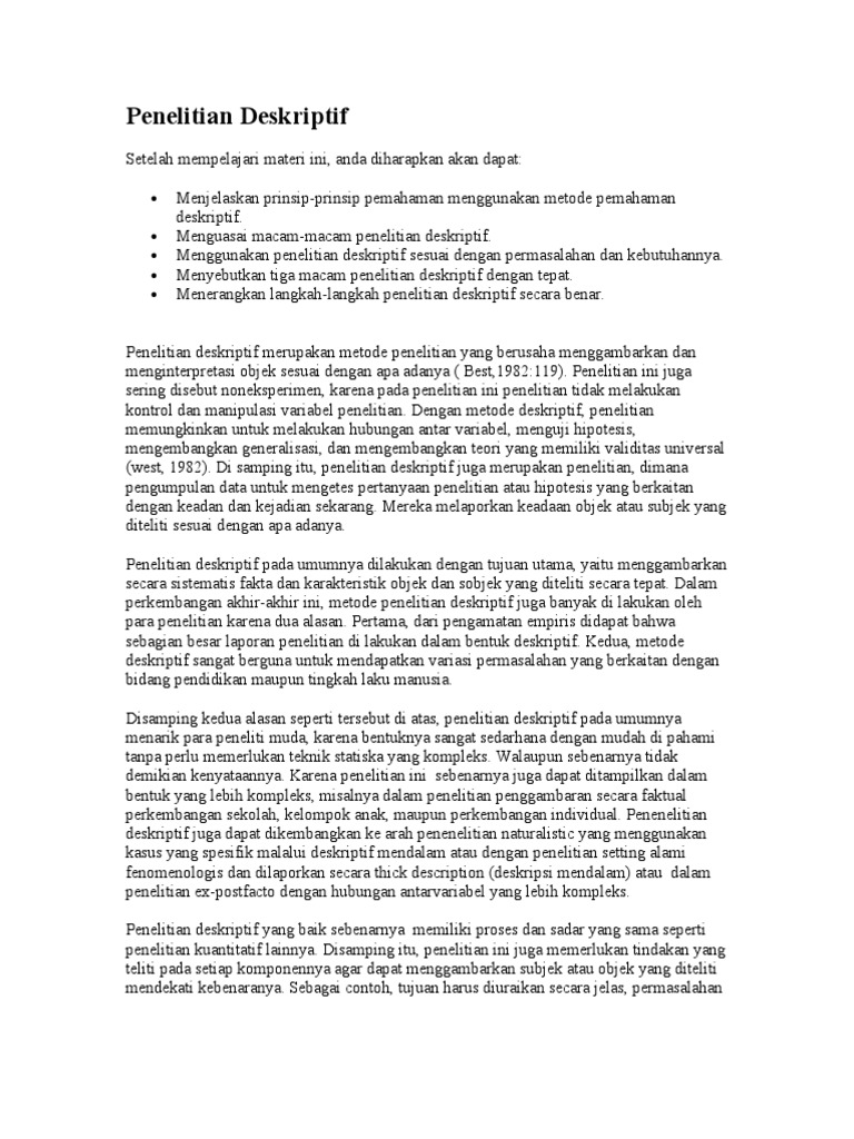Contoh metode penelitian deskriptif. Penelitian deskriptif mempelajarai masalah masalah dalam masyarakat serta tatacara yang berlaku dalam masyarakat serta situasi situasi tertentu termasuk tentang hubungan kegiatan kegiatan sikap sikap pandangan pandangan serta proses proses yang sedang berlangsung dan pengaruh pengaruh dari. Metode penelitian deskriptif bertujuan untuk menggambarkan menjelaskan dan memvalidasi fenomena sosial yang menjadi subjek penelitianmetode penelitian deskriptif adalah penelitian naratif yang digunakan dalam proyek penelitian kualitatif atau kualitatif. Melalui data deskriptif peneliti mampu mengidentifikasi mengapa apa dan bagaimana fenomena sosial terjadi. Menurut whintney 1960 metode deskriptif adalah pencarian fakta dengan interpretasi yang tepat. Bebicara mengenai kondisi tersebut setidaknya pada artikel ini akan mengulas lebih dalam tentang pengertian motode dan contoh penelitian deskriptif. Metode penelitian deskriptif adalah metode penelitian yang proses pengumpulan datanya memungkinkan peneliti untuk menghasilkan deskripsi tentang fenomena sosial yang diteliti.