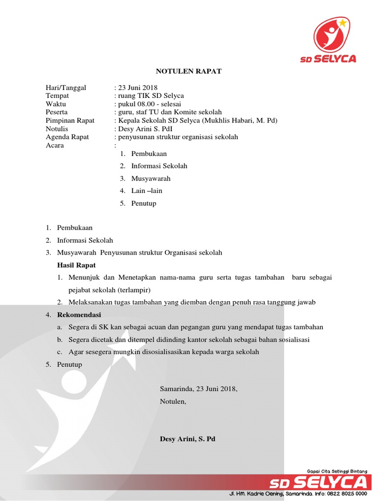 Contoh notulen rapat selama ini dalam berbagai kegiatan kadang tidak lepas dari yang namanya notulen. Dalam proses penyusunan penetapan dan pengesahan struktur organisasi sekolah madrasah diperlukan berbagai administrasi sebagai legalitas dasar hukum.