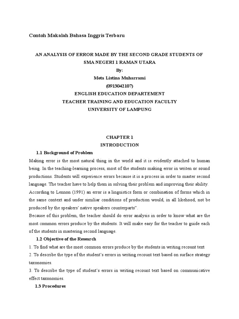 Mimin harap kalian fine or not bad. Berikut ini adalah sebuah contoh makalah dalam bahasa inggris dengan tema pendidikan yang bisa kamu pelajari saat mendapatkan tugas membuat karya tulis ilmiah dan makalah namun harus membuatnya dalam bahasa inggris. Selain tema yang beragam judul yang tersedia juga banyak. Rabu 22 februari 2012. Why did i choose this topic. Membuat paper sendiri umumnya untuk memenuhi tugas dari dosen untuk mengetahui tingkat pengetahuan mahasiswa.