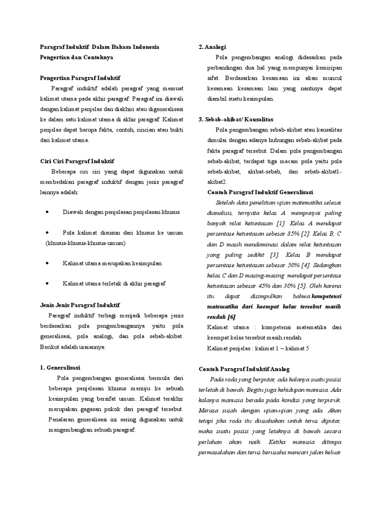 1 saat ini untuk mencari suatu referensi atau informasi tidak terlalu sulit. Contoh paragraf induktif pada pembahasan materi kali ini terkait contoh paragraf induktif singkat lingkungan pendidikan kesehatan dan lain sebagainya. Ada yang sudah tahu apa itu paragraf analogi. Contoh paragraf deduktif singkat 3. Ini karna keberadaan media internet dimana membuat semuanya bisa mudah untuk didapat. Pas sekali jika kamu membuka web ini karena pada kesempatan kali ini admin akan membahas semua tentang paragraf analogi sehingga memudahkan kamu untuk memahaminya.