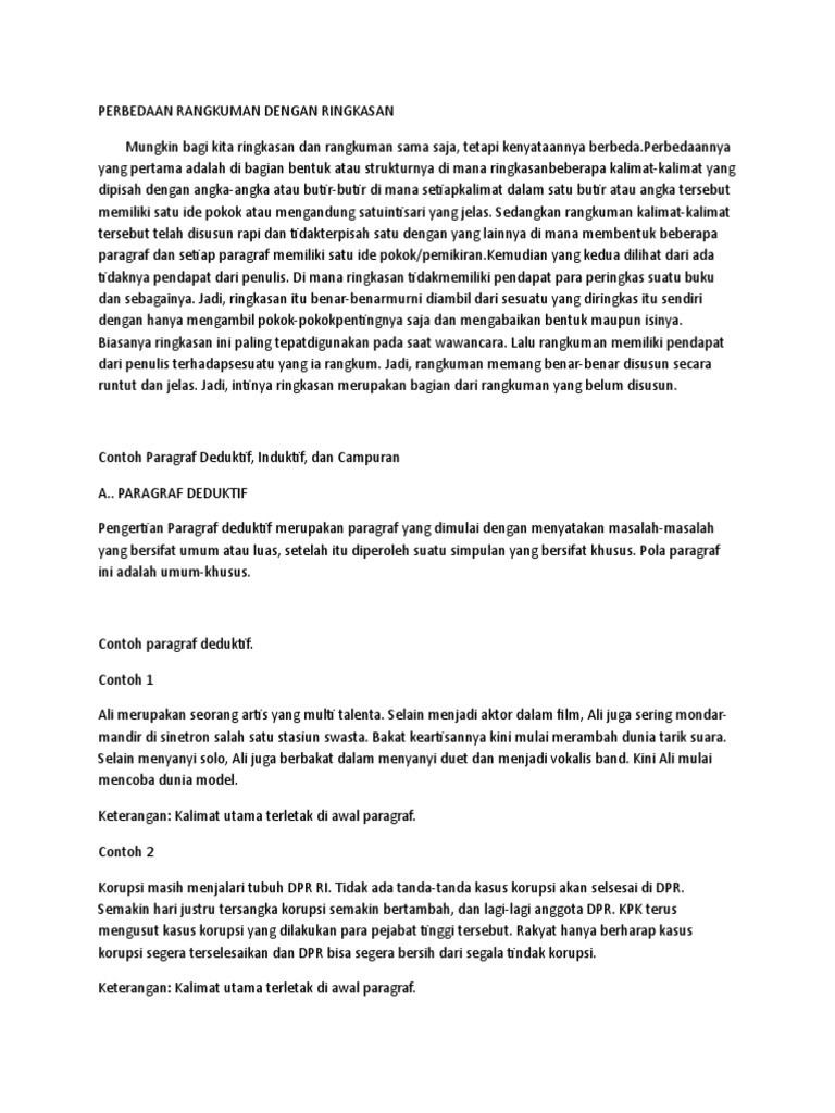 Contoh paragraf deduktif induktif dan campuran. Pengertian paragraf deduktif induktif dan campuran paragraf merupakan rangkaian kalimat yang membentuk satu gagasan pokok. Contoh paragraf deduktif induktif dan campuran 17 mei 2020 14 mei 2020 oleh bagus al menurut letak gagasan utamanya paragraf terbagi menjadi 3 yaitu paragraf deduktif induktif dan campuran. Contoh paragraf deduktif induktif dan campuran contoh paragraf deduktif indonesia merupakan negara yang kaya akan budaya. Paragraf deduktif induktif dan campuran paragraf merupakan sebuah susunan dari beberapa kalimat yang mengandung sebuah gagasan. 10 contoh kalimat repetisi dalam bahasa indonesia 12 contoh majas paradoks dalam kalimat bahasa indonesia. Materi mengenai kalimat deduktif dan induktif serta campuran cukup sering keluar di soal soal pelajaran bahasa indonesia untuk itu penting kita tahu contoh paragraf deduktif dan induktif agar kita bisa menjawab dengan mudah soal yang diberikan oleh guru kita.