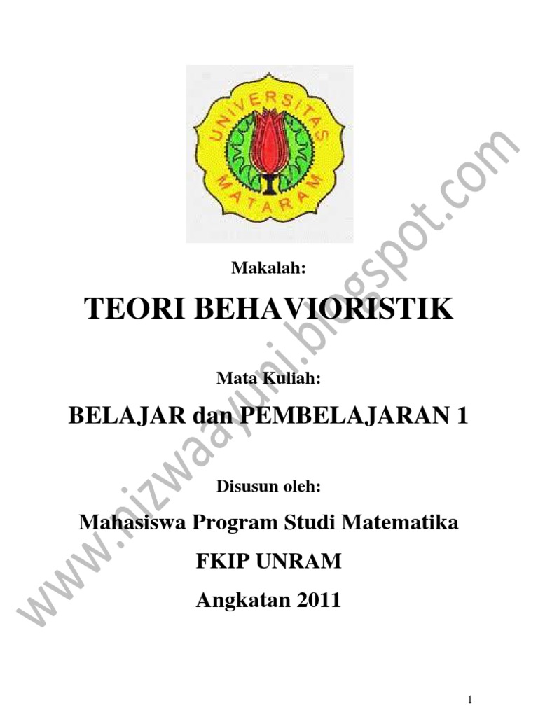 Contoh penerapan teori behavioristik dalam pembelajaran matematika. Guru memberikan contoh soal yaitu gambarkan grafik fungsi dari persamaan kurva yx 2siswa merespon dengan memperhatikan penjelasan dari guru. Lalu guru menjelaskan jawabannya yaitu cara yang digunakan untuk menggambarkan grafik fungsi kuadrat adalah. Teori behavioristik mendifinisikan bahwa belajar merupakan perubahan perilaku khususnya perubahan kapasitas siswa untuk berperilaku yang baru sebagai hasil belajar bukan sebagai hasil proses pematangan pendewasaan semata. Menurut teori ini yang terpenting adalah masukan atau input yang berupa stimulus dan keluaran atau output yang berupa respons. Teori ini mempengaruhi perkemabangan teori belajar dan pelaksanaannya dalam pembelajaran yang disebut sebagai teori belajar behavioristik. Aplikasi teori behavioristik dalam pembelajaran.