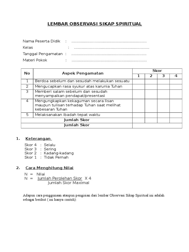 Sikap spiritual sebagai perwujudan dari menguatnya interaksi vertikal dengan tuhan yang maha esa sedangkan sikap. Pendidik dapat memilih jurnal sebagai instrumen penilaian atau instrumen lain yang relevan. Lembaran ini diisi oleh guru untuk menilai sikap spiritual peserta didik. Adapun topik pembahasan yang akan dibagikan yaitu tentang contoh indikator penilaian sikap spiritual dan sikap sosial pada kurikulum 2013. Contoh penilaian sikap spiritual dapat diunduh disini. Kurikulum 2013 membagi kompetensi sikap menjadi dua yaitu sikap spiritual yang terkait dengan pembentukan peserta didik yang beriman dan bertakwa dan sikap sosial yang terkait dengan pembentukan peserta didik yang berakhlak mulia mandiri demokratis dan bertanggung jawab.