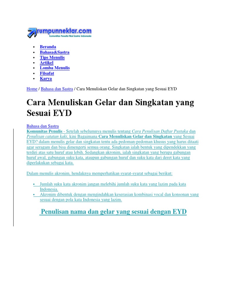 Contoh penulisan nama dan gelar yang benar menurut eyd. Gorontalo baraberitacom sabtu 10032018 didasari oleh pengetahuan di bangku kuliah dan beberapa refrensi antara lain dari zaini blog tergerak hati saya untuk menulis tentang cara menulis nama dan gelar yang benar karena sering saya membaca dimedia sosial surat kabar cetak maupun online baliho dan lain lain hampir semua penulisan gelar kurang tepat. Setelah membaca status salah satu teman di media sosial sempat penasaran apa betul penulisan gelar pada baliho beberapa caleg bahkan hampir semuanya salah. Cara penulisan gelar dalam penulisan gelar masih sama satu kelompok dengan pemahaman dalam penulisan singkatan. Untuk menjawab penasaran itu coba mencari di internet tentang penulisan gelar yang baik dan benar menurut eyd akhirnya ketemu juga tulisan yang diharapkan. Karena sangat berpengaruh terhadap kredibelitas seseorang. Penulisan gelar yang benar beserta contoh penulisan gelar diploma sarjana dan doktor by guru angga posted on may 28 2020 materibelajarcoid pada kali ini akan membahas secara detail tentang cara penulisan gelar yang benar menurut pemerintah dan beberapa contoh penulisan gelar untuk lebih jelasnya sima pembahasan dibawah ini.