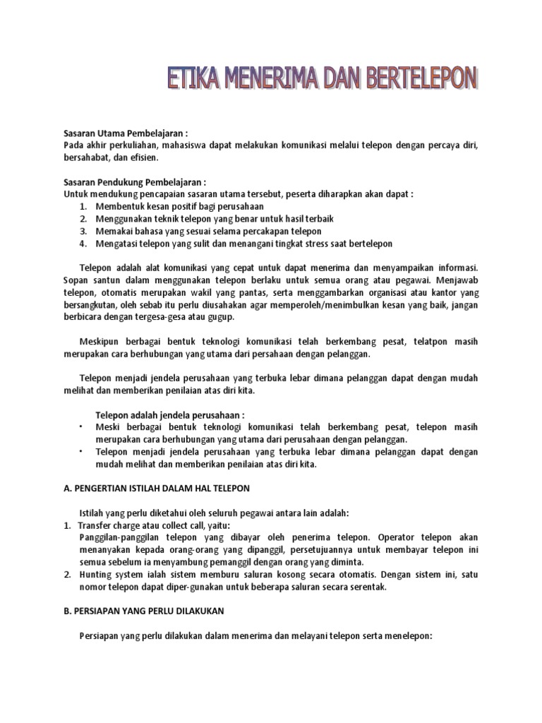 Percakapan telepon di perusahaan talking through telephone. Hal tersebut dikarenakan lebih efektif dibandingkan harus pergi ketempat orangnya langsung. Percakapan tersebut juga dapat terjadi melalui media lain seperti telepon. 5 contoh percakapan telepon dalam bahasa inggris beserta artinya terjemahan dalam bahasa indonesia sahabat sbi yang super kali ini mimin akan memberikan contoh percakapan dalam telepon dalam bahasa inggris yang berisi cara menjawab telepon dan meninggalkan pesan dalam telepon. Diera modern ini tentunya kita sering melakukan percakapan ditelepon. Penjelasan tentang etika berkomunikasi secara formal melalui telepon etika berkomunikasi salah satu nya melalui telepon adalah penting apabila anda adalah karyawan perusahaan staf.