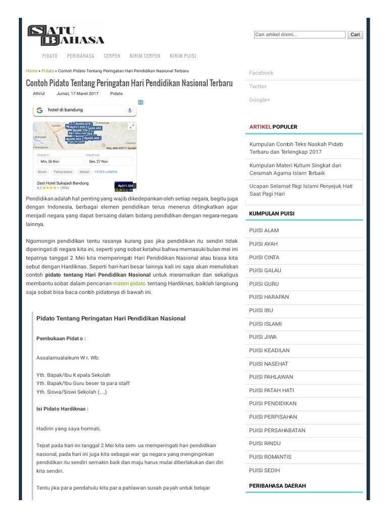 Contoh pidato hari pendidikan nasional. Pada hari ini tepat kita memperingati hari pendidikan nasional dimana ki hajar dewantoro telah mendirikan perguruan taman siswa. Dalam rangka memperingati hari pendidikan nasional. Naskah pidato hari pendidikan nasional nama. Seluruh bangsa indonesia memperingati hari pendidikan nasional. Memang banyak sekali yang harus anda lakukan saat membuat pidato dengan kalimat yang sederhana dan mampu membius semua orang yang anda. Contoh pidato bahasa jawa tentang pendidikan assalamualaikum warahmatullahi wabarakatuh.