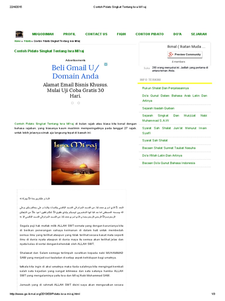 Silahkan anda edit seperti. Kaum muslimin dan muslimat yang kami panjatkan. Dalam rangka memperingati hari besar islam isro wal miraj nabi muhammad saw. Semoga contoh pidato berikut ini bisa bermanfaat untuk anda semua barang kali bisa menjadi referensi untuk anda yang berniat untuk pidato di acara peringatan isra miraj nanti. Contoh pidato isra miraj pidato isra miraj biasanya berisi materi tentang suatu pandangan khusus atau fatwa dan pendapat tentang kehidupan manusia dan hubungannya dengan acara isra miraj ini. Peringatan isra miraj biasa dilaksanakan oleh umat muslim setiap tanggal 27 bulan rajab setiap tahunnya.