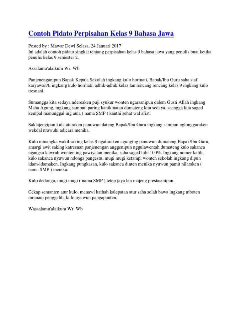 Contoh pidato perpisahan kelas 6. Di jenjang inilah seorang siswa harus bisa memberikan kesan kepada gurunya karena pada jenjang inilah seorang siswa sudah bisa dikatakan dewasa. Pidato perpisahan sekolah sekolahpidato perpisahan sekolah adalah kata sambutan yang berisikan tentang ucapan perpisahan yang disampaikan oleh siswa alumni kepada gurunya. Berdasarkan isi yang disampaikan pidato terdiri atas berbagai macam jenisnya. Contoh teks pidato perpisahan kelas 9 smp pidato ialah sebuah kegiatan menyampaikan suatu gagasan ide pendapat dan lain sebagainya dalam bentuk lisan dan disampaikan kepada khalayak ramai dengan komunikasi satu arah. Contoh pidato perpisahan lengkap kelas 6 9 teks pidato adalah salah satu bentuk komunikasi satu arah dalam bentuk mengekspresikan ide atau pemikiran tentang beberapa hal kepada banyak orang dan tidak mendapatkan langsung dari pendengar.