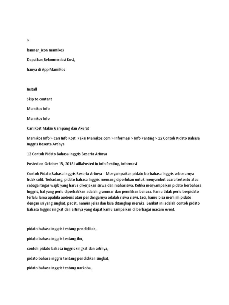 Contoh pidato singkat bahasa inggris beserta artinya. Sekian contoh pidato bahasa inggris 2 paragraf durasi 2 5 menit yang singkat padat dan jelas di atas jika ada kekurangan atau kelebihan silahkan dimodifikasi. Contoh pidato bahasa inggris singkat tentang lingkungan dan artinya lingkungan adalah salah satu topik yang paling sering dipakai saat seseorang berpidato. Karena itulah tema pendidikan seringkali dijadikan tema untuk berpidato. Nanti jika masih ada kesempatan lagi kami akan menambah koleksi contoh pidato bahasa inggris tema tema lain yang belum ditulis. Itu karena saat ini lingkungan yang ada disekitar kita begitu memprihatinkan. Membaca artikel bahasa inggris sangatlah penting bagi kita yang menguasai bahasa inggris.